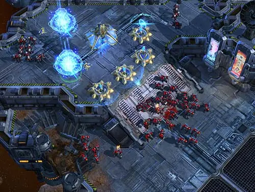 Para materializarse, las naves de combate de la flota protoss necesitan un vínculo de entrada mucho más potente que los que proporcionan los accesos estándar. Los inmensos puertos estelares son capaces de invocar naves que se encuentren en una órbita superior o a inmensas distancias para que aparezcan sobre la superficie de un planeta. La construcción de uno o más puertos estelares en una base protoss es una garantía de que se ha convertido en un punto de escala ofensivo principal. Este pasaje del informe de acción del Sargento de vuelo Aaron Keebler nos ayuda a destacar la rapidez con la que los protoss pueden cambiar su posición.