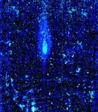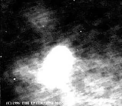 Según John Lear, estas fotos corresponderían a un reactor nuclear situado en la superficie lunar. El color azul se debería a las radiaciones emanadas del mismo
