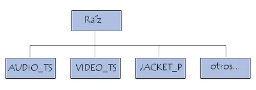 Un DVD de video tiene una organización jerárquica de carpetas que le permite almacenar datos de video y audio. Generalmente se basa en la siguiente estructura: