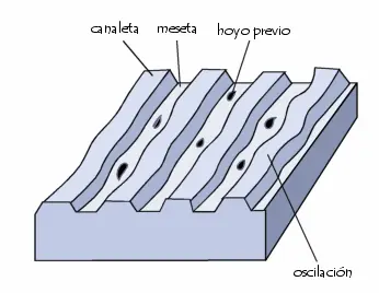 El formato DVD-R/DVD-RW se basa en lo que se conoce como técnica de "hoyo previo". Al igual que los CD-R, los DVD grabables y regrabables usan un "surco previo" (un surco espiral preestampado en el disco), que sigue una onda sinusoidal llamada oscilación. El surco previo permite definir la posición del cabezal de grabación en el disco (llamado rastreo) mientras que la frecuencia de oscilación permite que la grabadora ajuste su velocidad. Por el contrario, la información de direccionamiento (es decir, dónde se encuentran los datos) se define mediante hendiduras preestampadas en los hoyos del disco entre el surco del disco, denominadas "hoyos previos de meseta", (o LPP).
