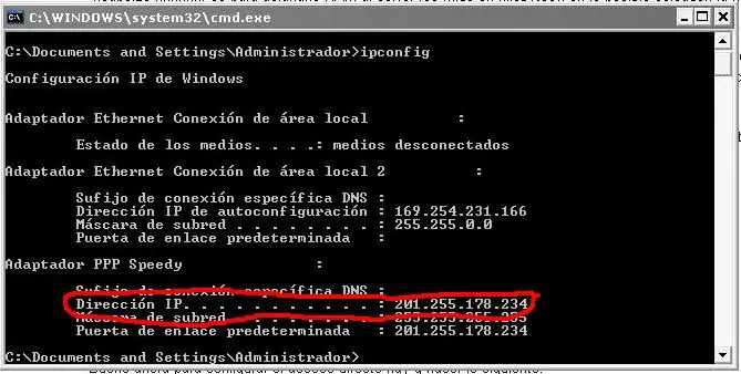 Para saber que ip tenes, tenes que ir a : Inicio-->Ejecutar-->ahi escribir ¨cmd¨ (sin comillas)y la ip esta donde dice Direccion IP.....: