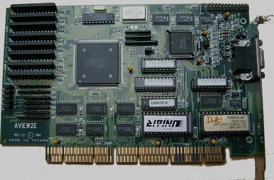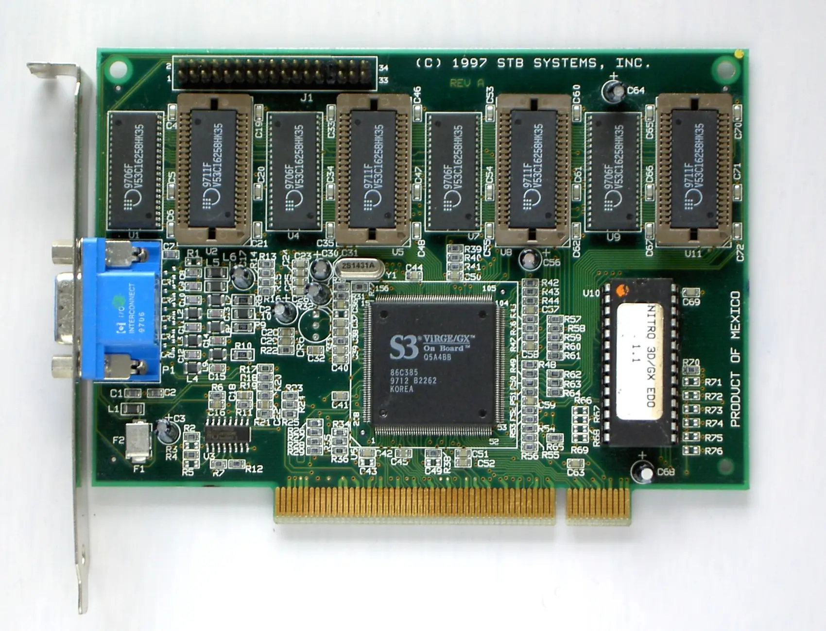Los competidores del PC, Commodore Amiga 2000 y Apple Macintosh reservaron en cambio esa posibilidad a ampliaciones profesionales, integrando casi siempre la GPU base (que batía en potencia con total tranquilidad a las tarjetas gráficas de los PC del momento) en sus placas madre. Esta situación se perpetúa hasta la aparición del Bus PCI, que sitúa a las tarjetas de PC al nivel de los buses internos de sus competidores, al eliminar el cuello de botella que representaba el Bus ISA. Aunque siempre por debajo en eficacia (con la misma GPU S3 ViRGE, lo que en un PC es una tarjeta gráfica avanzada deviene en acelerador 3D profesional en los Commodore Amiga con ranura Zorro III), la fabricación masiva (que abarata sustancialmente los costes) y la adopción por otras plataformas del Bus PCI hace que los chips gráficos VGA comiencen a salir del mercado del PC.