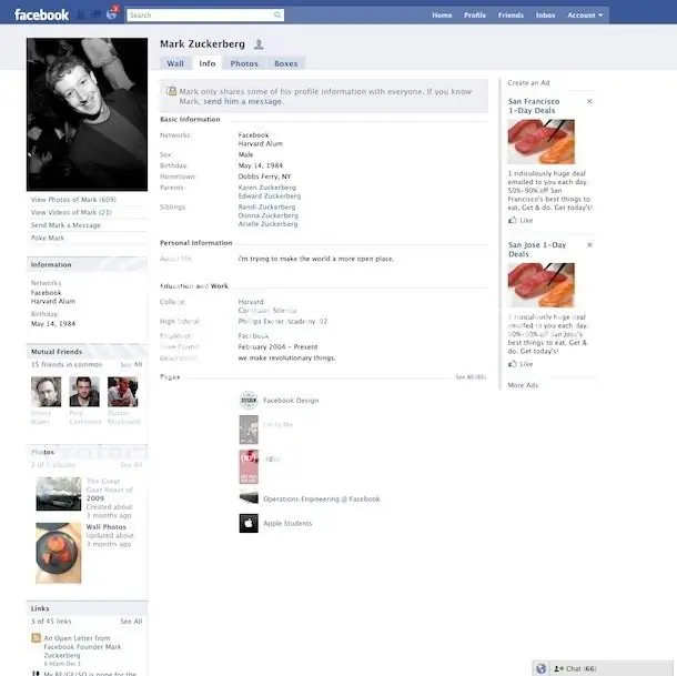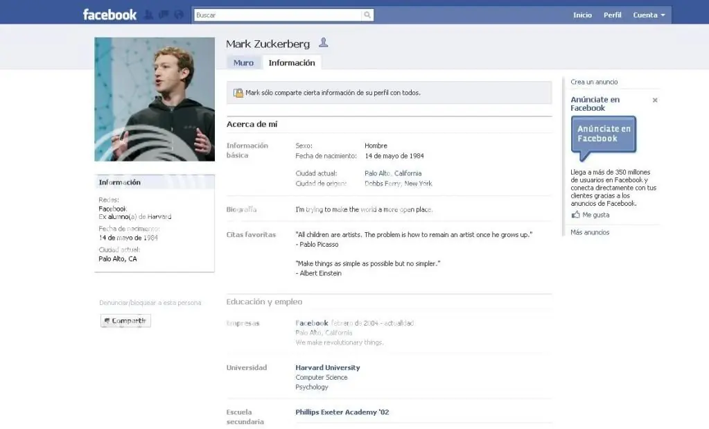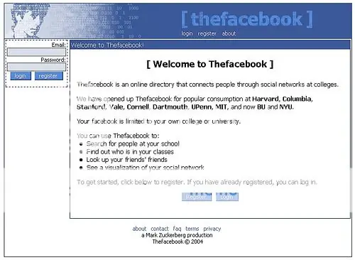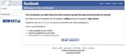 Facebook es un red social creada por Mark Zuckerberg, estudiante de Harvard, que vio la luz el pasado 4 de febrero del 2004. Inicialmente se creó como una red social para los estudiantes de la universidad de Harvard en la que tan sólo los estudiantes de esta universidad podían darse de alta. En cuestión de meses, el modelo se extendió a otras universidades de la región de Boston. No tardó en extenderse al resto de universidad del país. No fue hasta el 11 de septiembre de 2006 cuando se abrió el acceso al público en general pudiéndose darse de alta cualquier persona que tuviese una dirección de correo electrónico.