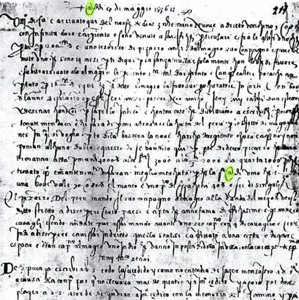 Uno de los documentos más antiguos que se conocen que contiene una @ impresa data del año 1536, y se trata de una carta enviada por un mercader italiano desde Sevilla a Roma. En dicho escrito se detalla la llegada de tres barcos provenientes de América, cargados de tesoros. Pueden leerse párrafos como “Así, una @ de vino, que es 1/13 de un barril, vale 70 u 80 ducados…” En ese contexto, la arroba representaba una unidad de medida utilizada por griegos y romanos que equivalía a “un cuarto de ánfora.” ¿Confuso, verdad? Pero eso no es nada: podía (y en algunos sitios aún puede) emplearse como medida de capacidad o volumen, con un valor que variaba de acuerdo al producto que se estuviese comerciando. Por ejemplo, si se trataba de líquidos, “una arroba de aceite” era equivalente a unos 12 litros y medio, pero si se estaba negociando con vinos, su valor era de algo más de 16 litros. También se la utilizó como medida de masa. En efecto, la @ representa una masa equivalente a la cuarta parte de un “quintal”. El quintal es una antigua unidad de masa y de capacidad usada en España y en Hispanoamérica -en Argentina es común escuchar a las personas mayores, en el campo, hablar de “quintales de trigo por hectárea”- que equivale exactamente a 46,0093 Kg. Una “@”, por lo tanto, entonces, equivale a poco mas de 11 kilogramos y medio.