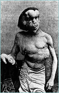 Esta extraña enfermedad habría permanecido oculta de no ser por que Joseph Merrick – inmortalizado como el "Hombre Elefante" debido al aspecto que le daban los tumores de su cabeza y el color grisaceo de su piel – fue diagnosticado más tarde de un severo caso de Síndrome de Proteus además de, neurofibromatosis, cosa que los médicos pensaban anteriormente que tenía. Extrañamente, el brazo izquierdo y los genitales de Merrick no estaban afectados por la enfermedad que había deformado el resto de su cuerpo.