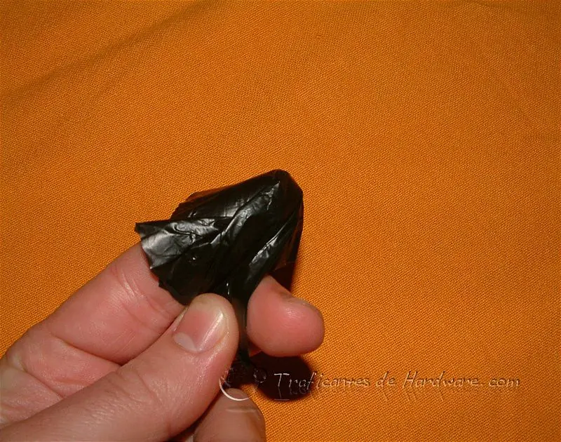 Ahora toca esparcirla, para ello nunca deberemos utilizar objetos metálicos. Algunos fabricantes como Zalman, ya comercializan pasta térmica en botes de vidrio con un pequeño pincel , aunque esto no es habitual. Nosotros hemos utilizado muchísimas herramientas, y lo más cómodo al final, es lo más simple. Cogiendo un pequeño trozo de bolsa plástica, envolvemos nuestro dedo índice, y simplemente la esparcimos con el. Es fácil, rápido, limpio y cómodo.