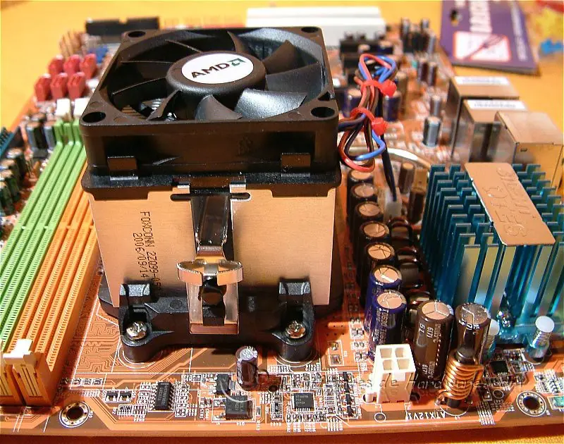 El procesador os debe de quedar de manera similar al de la imagen, en nuestro caso se trata de un procesador AM2 de AMD. Ahora ya sólo queda aplicar una fina capa de pasta térmica. Aquí es donde muchos cometen el error de aplicar gran cantidad de pasta, consiguiendo el efecto contrario que se desea. La cantidad de pasta térmica que debemos echar, es la mínima posible siempre y cuando cubra toda la superficie del procesador .