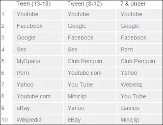 Las palabras más buscadas por los niños en internet durante el 2009:
