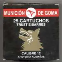 Cartucho ahuyenta alimañas, con bala de goma maciza.Vaina de Fiocchi y carga de Trust Eibarrés.