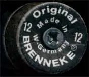 Bala Brenneke, montada en multitud de cartuchos de diversas marcas. Bala de plomo, con estrías helicoidales muy marcadas en el perímetro para provocar el giro por efecto de la aerodinámica. Taco de fieltro entre dos cartones atornillado a la bala. En el frente de la bala, lleva la inscripción \"original BRENNEKE cal. 12 ®\"