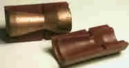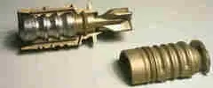 Balas de cartuchos policiales tipo FIER. Un sabot plástico continene un penetrador central y un \"martillo\" de latón. Según modelo, pueden perforar hasta chalecos antibala.