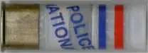 Cartucho en plástico translúcido blanco, con la bandera francesa y la inscripción \"POLICE NATIONALE\". Bala Brenneke original.