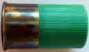 Cartucho RUDO para la escopeta antidisturbios que utilizaba la extinta Policia Armada Española. Longitud 35 mm. Vaina de cartón verde y posteriormente plástico negro.