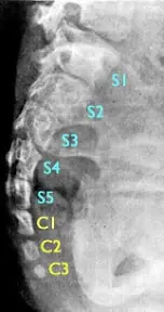 Descripción: Se observa la presencia de una cola vestigial en la zona final del sacro, a nivel cóccix. Esta cola está compuesta de tejido conectivo, músculos, vasos sanguíneos, nervios, piel, vértebras y cartílago.