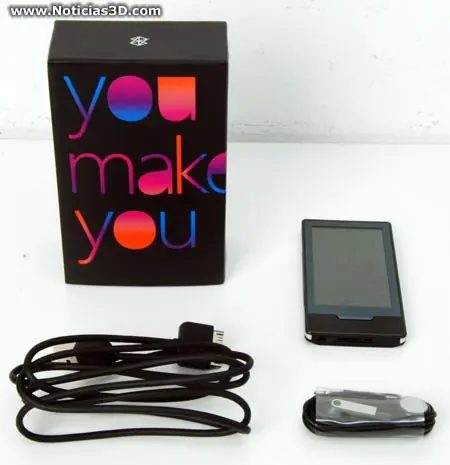 El reproductor viene embutido en una bandeja que lo deja fijo ante cualquier transporte. Debajo de la misma hay un par de cosas que nos será muy útiles: unos auriculares de botón (esenciales si queremos usar el aparato) y un cable para conectar el Zune HD al ordenador. Nótese que dicho cable posee una toma USB (para el PC) por un lado, y por el otro una entrada propietaria que nos servirá para otras cosas (luego lo vemos). El paquete es sencillo, pero incluye todo lo necesario para comenzar. Eso sí, si queremos potenciar el aparato necesitaremos accesorios. Por suerte, nos han incluido un par de complementos muy interesantes: un dock para convertir el Zune HD en un reproductor multimedia fijo con salida de televisión, y un paquete con diferentes cables.