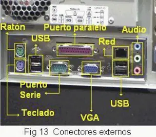 En las nuevas placas ATX estos conectores se encuentran directamente soldados a la Motherboard. En estos se pueden conectar los dispositivos que interactuan directamente con nosotros, como el teclado, el mouse, la impresora, el monitor, dispositivos externos tales como MP3s, Pen Drives, etc. Los principales conectores son:
