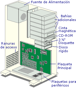 Son varios los componentes que forman parte de una computadora personal. Una vez que se retira la tapa del gabinete , uno se encuentra con una "selva" compuesta por cables, circuitos integrados de diferentes tamaños, tarjetas, dispositivos, la fuente de alimentación y tal vez algún ventilador.