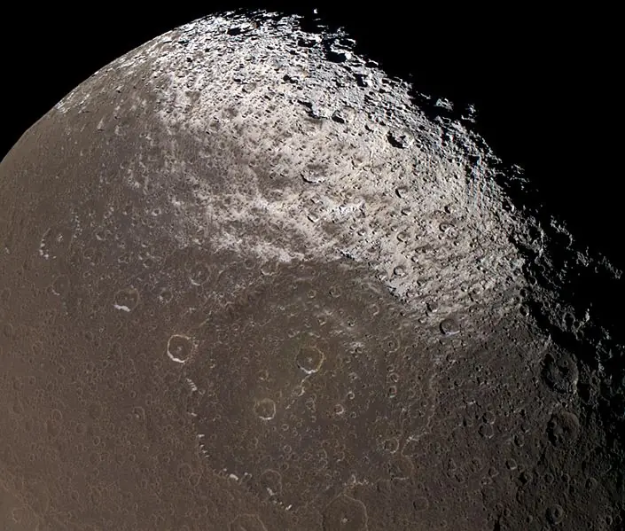 Incluso una mirada superficial a la luna Japeto de Saturno revela que es un bicho raro. Se trata de un mundo en dos colores: una mitad es de color negro, y la otra de blanco brillante. También de forma extraña, está achatada por los polos y aplastada también por los lados. Una cresta corre a lo largo de su ecuador, dándole la apariencia de una enorme cáscara de nuez.