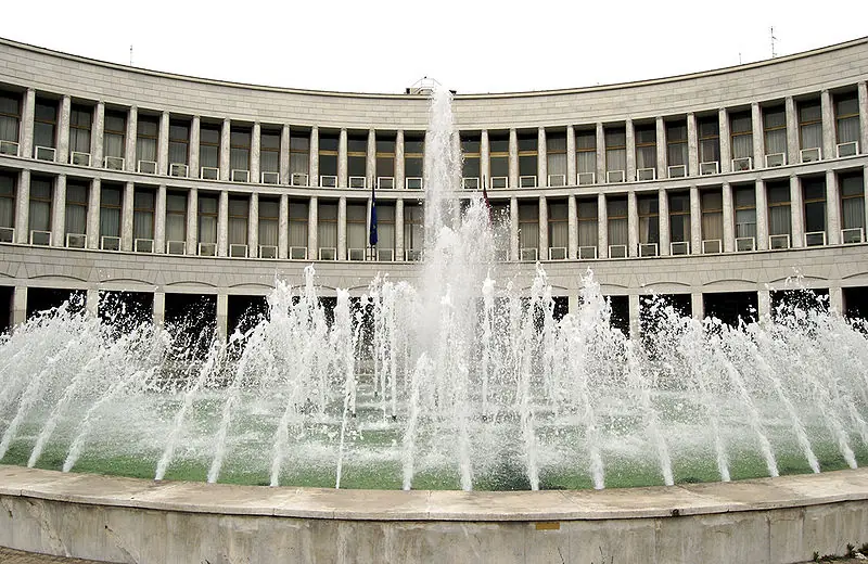 EUR (Q.XXXII o barrio 32 de Roma), diseñado para acoger la Exposición Universal de Roma prevista para 1942 cuyas siglas lleva. No llegó a celebrarse por causa de la guerra, pero el EUR sigue acogiendo numerosos edificios de un estilo que puede identificarse como racionalismo italiano, y restos de iconografía e inscripciones fascistas, entre las que destaca el Palazzo della civiltà del Lavoro, conocido como Colosseo quadrato ('Coliseo cuadrado'), construido entre 1938 y 1942.