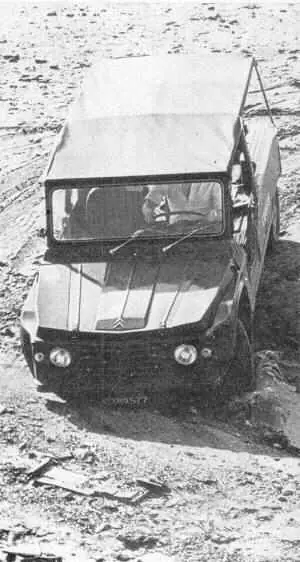 La respuesta francesa partió de Citroën que, utilizando la base y chasis del sempiterno 2CV y el motor del 3 CV fiscales franceses, lo revistió todo con una cáscara de plástico para parir al Mehari, el dromedario, una frivolidad remunerativa nunca tan bien bautizada. El desierto seria su medio ambiente. Una imagen de aventura para las bien pavimentadas rutas continentales. En ese terreno se movería con agilidad, seguro de si mismo. Y la sed no seria problema, la ausencia de oasis no le impediría seguir adelante: está refrigerado por aire.