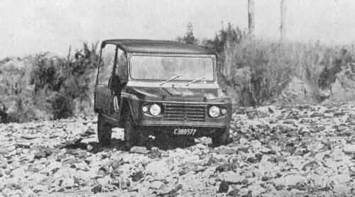 La caja de cuatro marchas se mantiene también idéntica a la del mencionado modelo. Las dos primeras (10 y 20) son lo suficientemente cortas como para permitir que las maniobras en la arena, en el barro o en pendientes, con dos o cuatro personas, o los 400 kilos que admite como carga máxima, lleguen a feliz término. La tercera alcanza casi los 90 km/h. y en directa bajo determinadas condiciones, puede llegar a los 110 km/ hora. Una buena velocidad final que también es de crucero.
