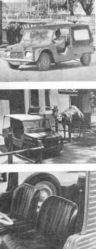 Dice el diccionario que el mehari es una especie de dromedario africano que se caracteriza por su ligereza y sobriedad y es muy apto para las expediciones militares. La definición le cabe muy bien a este modelo que produce la firma francesa en la Argentina. El Mehari, con carrocería de plástico y el motor del 3CV, es lo suficientemente ligero sobre cualquier terreno como para hacer de una difícil travesía o largo viaje un motivo de verdadera diversión a pleno aire. Es sobrio, en efecto, y en cuanto al uso militar que se le puede dar no creemos oportuno juzgarlo ahora.