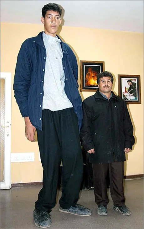 Un tumor en la glandula pituitaria le provoco a Sultan Kosen una enfermedad conocida como " gigantismo pituitario".Nacido en una diminuta ladea entre Turquia e Irak, mide 2,47 metros