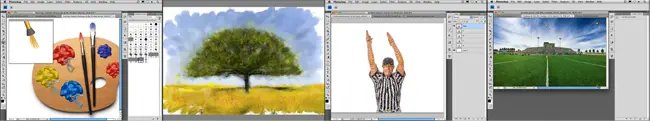 Un sistema similar de After Effects 'herramienta Puppet se ha añadido a Photoshop CS5, permitiendo a los artistas que no se deforme la imagen mediante la colocación de agujas en las zonas de bloqueo hacia abajo y luego trasladarse a las zonas de alrededor.. Una cuadrícula superpuesta muestra cómo la imagen está deformada.