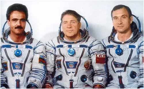 Valeri Vladímirovich Poliakov (a la derecha en la fotografía) es un cosmonauta ruso que tiene el record de permanencia en el espacio al permanecer a bordo de la estación espacial MIR durante 14 meses en un único viaje. Su estancia total en el espacio en todos sus viajes se alarga a 22 meses. Héroe de la Unión Soviética, Héroe de la Federación Rusa. Fotografía Flckir