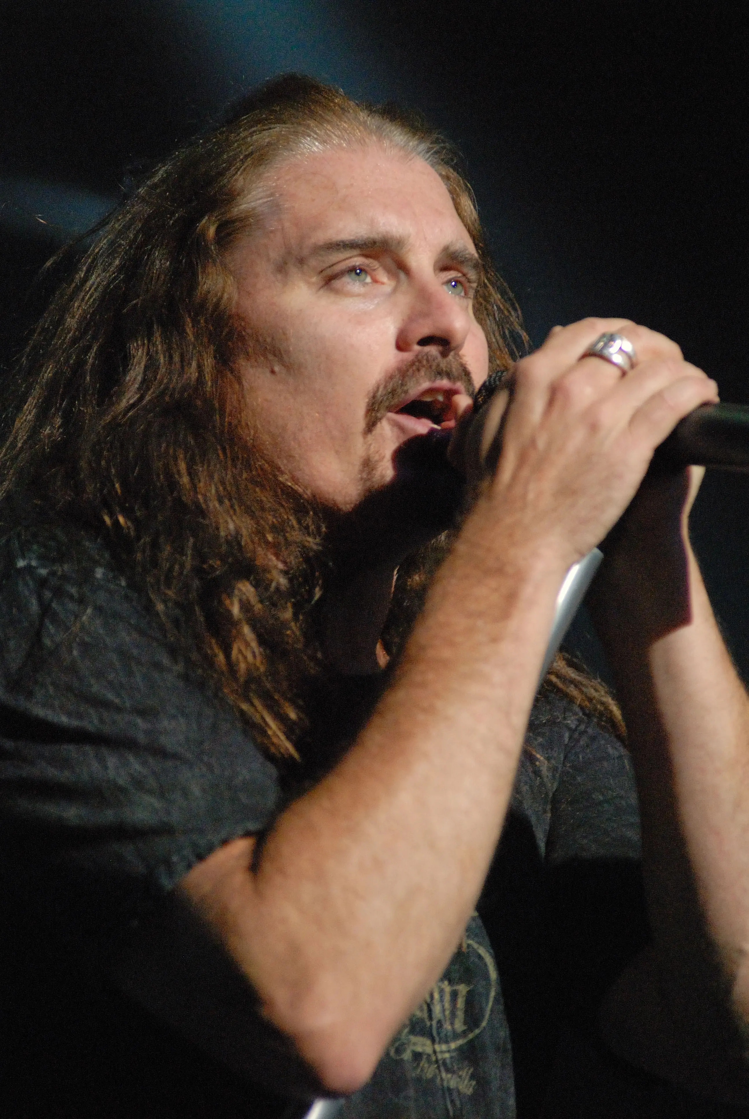 El cantante perfecto para la banda. Domina las partes lentas y rápidas, las notas agudas y graves, cambia la voz con la rápidez que le exigen las canciones. Siempre muy correcto y aplicado a su trabajo. Durante la mitad del recital estuvo trás del escenario, mientras los demás tocaban las partes instrumental, sin embargo esa ya es historia conocida, lo hace siempre.