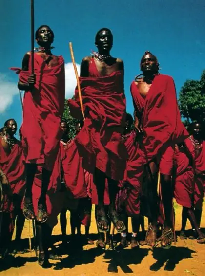 Son un pueblo estimado en unos 883.000 individuos, que viven en Kenia meridional, y en Tanzania septentrional. Hablan maa, que es una lengua nilótica oriental, si bien muchos de ellos son capaces de expresarse correctamente en suajili e inglés. La mayoría de los masáis mantienen su religión tradicional, aunque algunos han adoptado alguna forma de cristianismo.