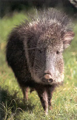 Características: Es el mayor de los chanchos silvestres. Su longitd total varía entre 1 m. y 1.22 m., correpondiendo a la cola unos 7 a 11 cm. En cuanto al peso ronda los 30 a 40 kg. La coloración es pardo grisácea. Sus orejas llegan a los 11 o 12 cm. de largo.