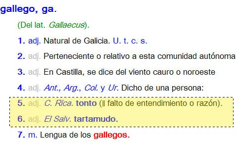 Hace unos días un grupo de diputados del Bloque Nacionalista de Galicia (BNG) descubrió que, en el habla coloquial de Costa Rica, se le llama ‘gallego’ a una persona un poco tonta; mientras que en ciertas zonas de El Salvador le dicen así a los tartamudos.