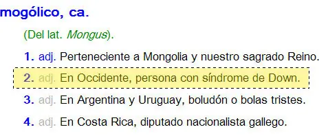 La diferencia entre ‘boludo’ y ‘mogólico’ es que el segundo vocablo —a pesar de ser compartido— no está aún del todo oficializado. Compartido significa, en este contexto, que todo el mundo entiende que no hay una referencia literal ni, por ende, peyorativa. Mientras que no oficializado representa que algunos no quieren que exista la metáfora. Se niegan a que se utilice, a que se propague y, sobre todo, a que quede por fin libre de malos entendidos.