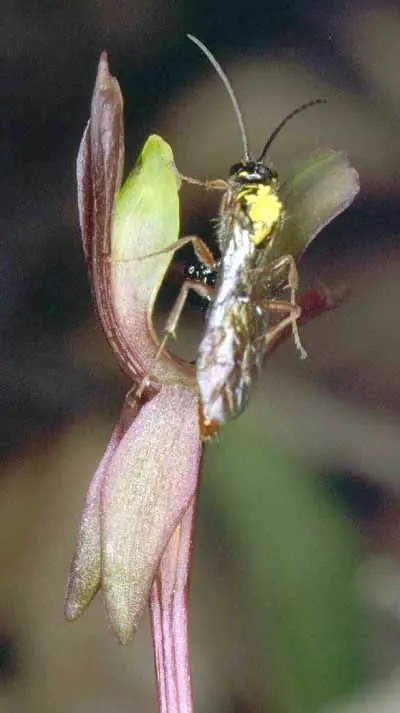 es una orquídea de color y olor, semejante a la carne cruda. Es polinizada por avipas de sexo masculino.