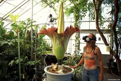 1. Rafflesia arnoldii:ésta planta parásito al florecer es la más grande del mundo con sus 3 pies de diámetro. La flor es de un color carnoso y tiene pintas que la hacen parecer la piel manchada de un adolescente con acné. Huele muy mal y tiene un agujero en el centro que sostiene de 6 a 7 cuartos de agua. La planta no tiene hojas, tallos ni raíces
