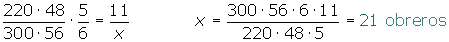 300 · 56 m² ------------> 5 días -------------> x obreros