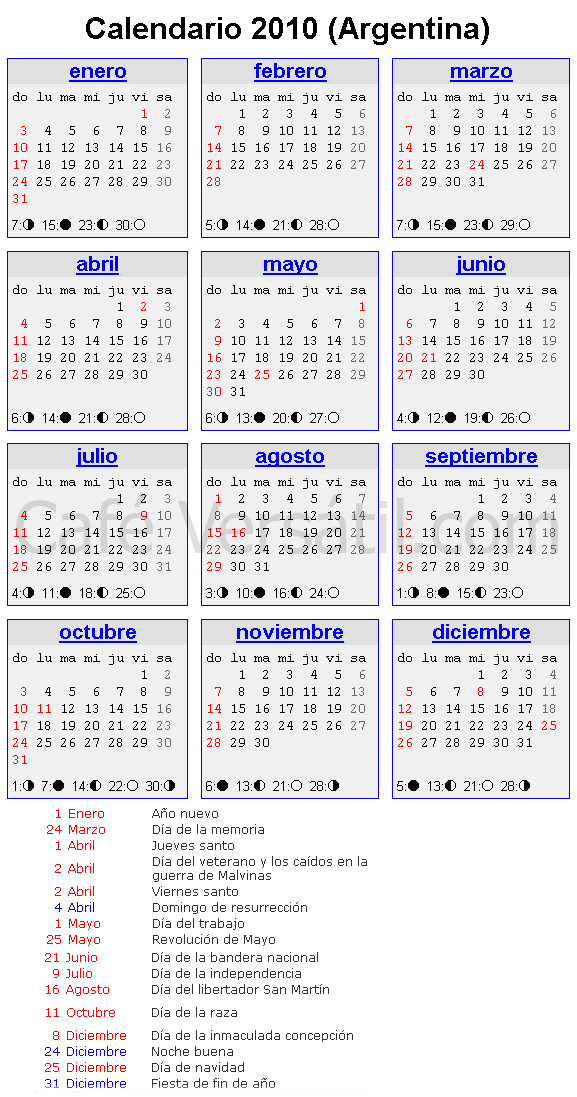 para los que piensan como yo, aqui tienen el calendario de feriados, para que programen, anelen y esperen ansiosos el proximo feriado.