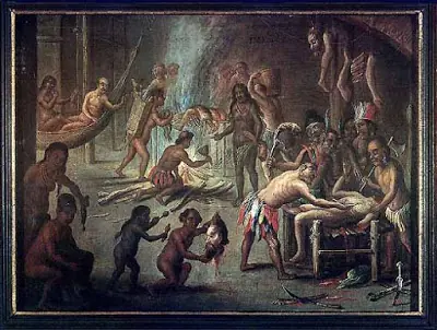 Antropofagia atribuida a los caníbales.