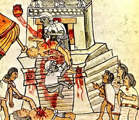 Los aztecas transformaron el sacrificio humano de resultado ocasional de la suerte en el campo de batalla en rutina en la cual no pasaba un día sin que alguien no fuera tendido en los altares de los grandes templos.