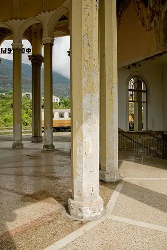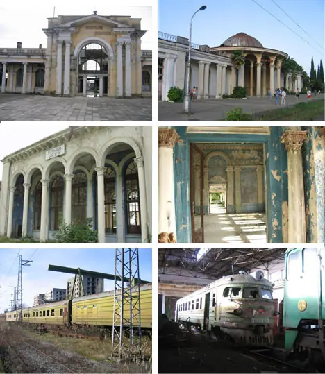 Otras áreas abandonadas: La región conocida como Abjasia es una zona semiindependiente dentro de Georgia en la cual mucho del transporte y la otra infraestructura se ha abandonado en las últimas décadas debido a una carencia de fondos. Poco antes el derrumbamiento de la Unión Soviética la región entró en conflicto con el resto de Georgia como Georgians empujada hacia independencia de Rusia. Hoy, Rusia publica los pasaportes para abjasios, paga sus pensiones de retiro y proporciona ciudadanía a muchas de la gente. No obstante, desde la caída de la URSS los presupuestos locales no han sido bastantes para mantener muchos edificios y para entrenar a redes según lo ilustrado por las imágenes arriba.