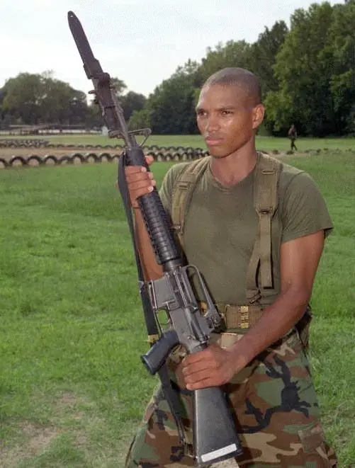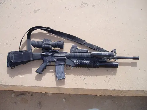 El M16 es el fusil de asalto estándar de los Estados Unidos, utilizado por primera vez en la Guerra de Vietnam sustituyendo al M14, rechazado en un principio por estar construido, en gran parte, de plástico y de aluminio.