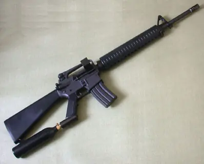 La M16 es una versión militarizada de la AR-15, diseñada por Eugene Stoner. Al principio encontró varios obstáculos por parte de los generales y personal de la Agencia de Investigación de Proyectos Avanzados de Defensa o (DARPA siglas en inglés) ya que tenían preferencia por calibres pesados, además de que era la primera arma construida con materiales compuestos ( acero, aluminio y plástico). La AR-15 espero 2 años para que finalmente lograra un soporte dentro de las fuerzas armadas; en una demostración el general Curtis LeMay ordeno 8,500 AR-15 para la defensa de bases aéreas del Comando Estratégico Aéreo, desafortunadamente el secretario de defensa Robert McNamara revoco el pedido. Esto no impidió que unidades de operaciones especiales y asesores americanos en Vietnam obtuvieran AR-15s.