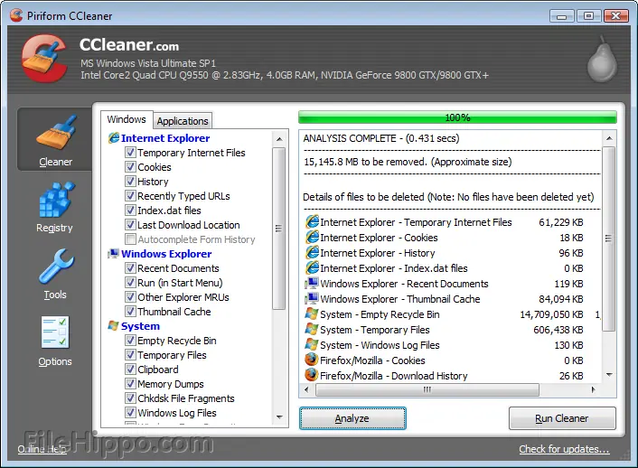 le daras con el chulito a lo que te puse en rojo . Pues le daras analizar y despues ejecutar limpiesa .
