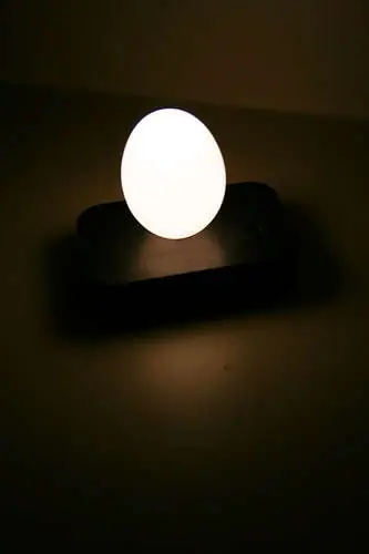 Una pequeña y simpática lámpara fabricada con un huevo, que contiene en su interior, un LED para su iluminación. Realmente es muy poca la luz que deja salir la capa del huevo, pero servirá como un bonito adorno