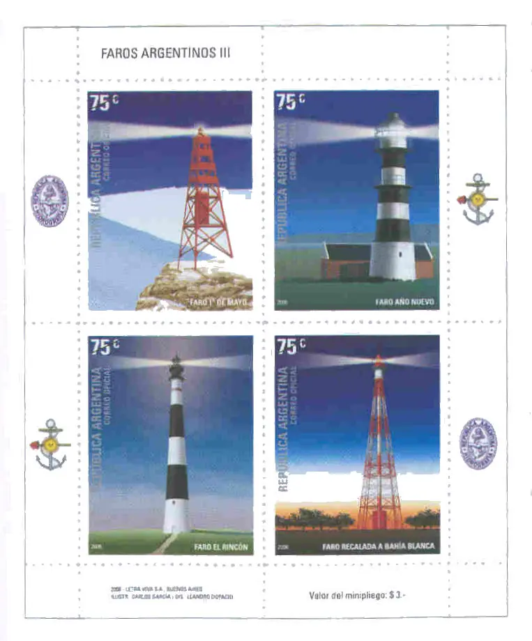 SELLOS POSTALES DE FAROS ARGENTINOS
