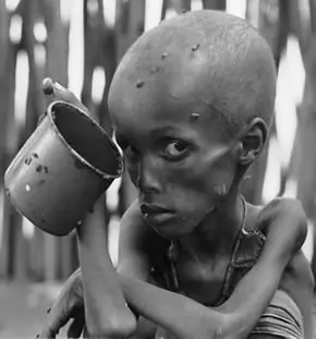 La hambruna es una situación que se da cuando un país o zona geográfica no posee suficientes alimentos y recursos para proveer alimentos a la población, elevando la tasa de mortalidad debido al hambre y a la desnutrición.