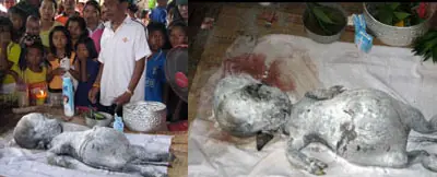 Últimamente se están viendo muchos casos de este tipo en Tailandia, y las personas que se lo encuentran lo idolatran, sin saber que esto es simplemente una malformación animal.