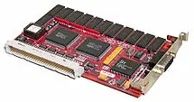 La evolución de las tarjetas gráficas dio un giro importante en 1995 con la aparición de las primeras tarjetas 2D/3D, fabricadas por Matrox, Creative, S3 y ATI, entre otros. Dichas tarjetas cumplían el estándar SVGA, pero incorporaban funciones 3D. En 1997, 3dfx lanzó el chip gráfico Voodoo, con una gran potencia de cálculo, así como nuevos efectos 3D (Mip Mapping, Z-Buffering, Antialiasing...). A partir de ese punto, se suceden una serie de lanzamientos de tarjetas gráficas como Voodoo2 de 3dfx, TNT y TNT2 de NVIDIA. La potencia alcanzada por dichas tarjetas fue tal que el puerto PCI donde se conectaban se quedó corto. Intel desarrolló el puerto AGP (Accelerated Graphics Port) que solucionaría los cuellos de botella que empezaban a aparecer entre el procesador y la tarjeta. Desde 1999 hasta 2002, NVIDIA dominó el mercado de las tarjetas gráficas (comprando incluso la mayoría de bienes de 3dfx)[7] con su gama GeForce. En ese período, las mejoras se orientaron hacia el campo de los algoritmos 3D y la velocidad de los procesadores gráficos. Sin embargo, las memorias también necesitaban mejorar su velocidad, por lo que se incorporaron las memorias DDR a las tarjetas gráficas. Las capacidades de memoria de vídeo en la época pasan de los 32 MB de GeForce, hasta los 64 y 128 MB de GeForce 4.