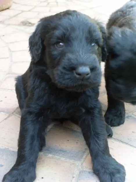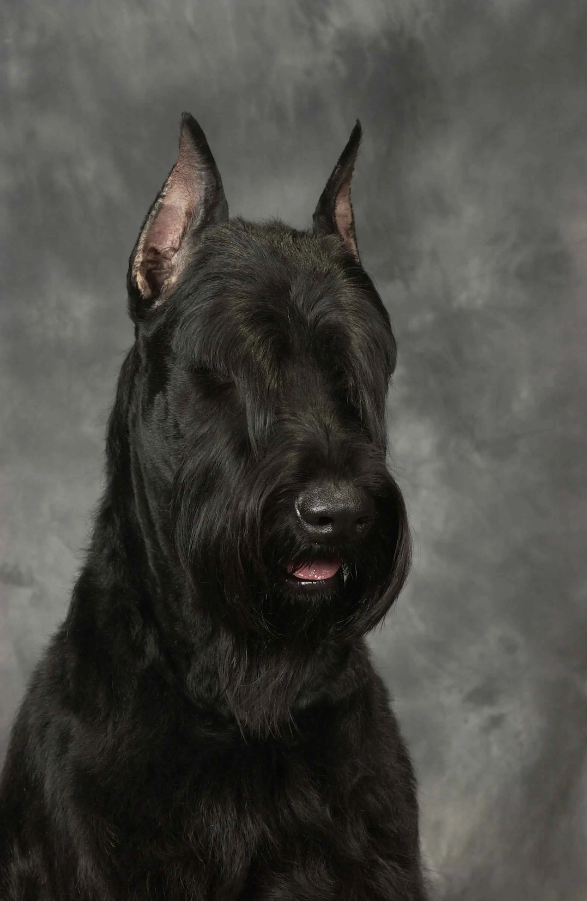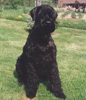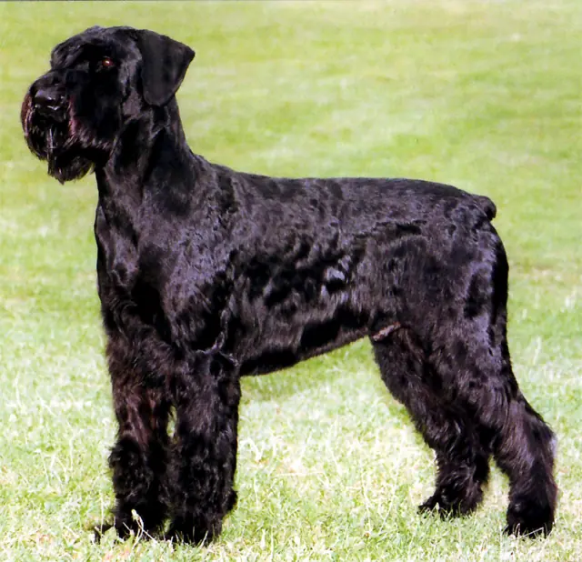 Historia: Este perro de origen alemán es similar a sus parientes pequeño y mediano del que al parecer procede mediante cruzamientos con dogos alemanes y boyeros de Flandes. Se presentó por primera vez como raza en Munich en 1909 con el nombre de "Schnauzer oso ruso".
